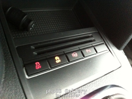 Commandes de pilotage : non gênée par la boite DSG (contrairement à la boite manuelle qui gêne leur accès, surtout quand on roule ...), les commandes utiles : désactivation de l'ESR (pour faire le con sur la neige), la désactivation du Start and Stop (utile si si !), enclenchement du Park Pilot et (dés)activation des capteurs de stationnement (les bip bip ..). Par contre je n'ai pas compris à quoi servent les deux rainures ...