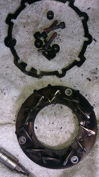 vous aurez donc ca!la c'est l'etape la plus delicate,il faut "decoller" le turbo du collecteur!et pas le choix,c'est maillet ou masse