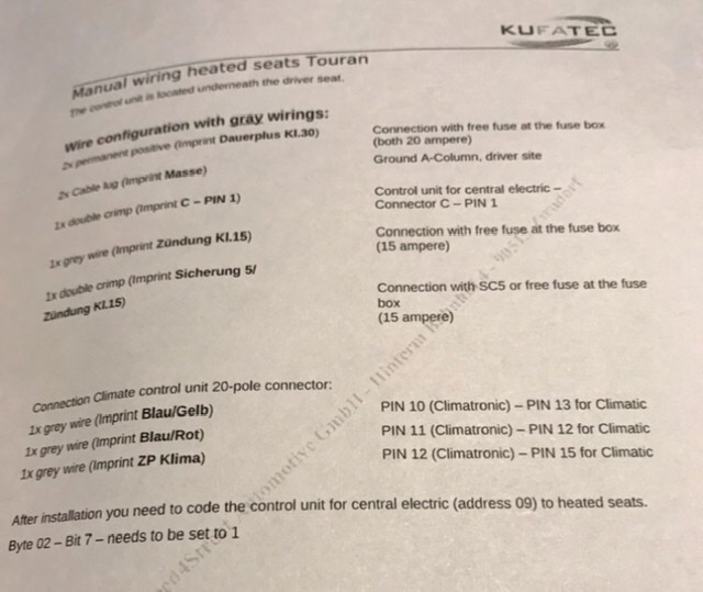Re: Installation sièges chauffant sur touran non équipe d’origine