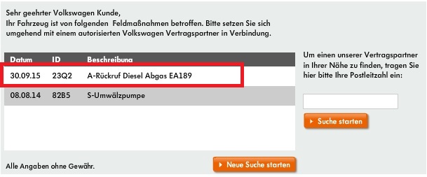 Avec les normes actuelles du CT, vos véhicules récents passent allègrement le CT... Donc pourquoi courir chez VW même si votre véhicule est éligible ?