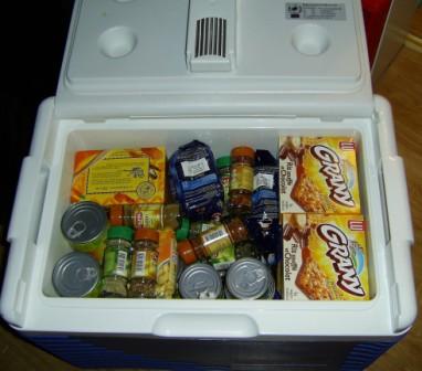 Donc voilà les photos. Bien sur, je ne mets en général pas des boites de conserves dans ma glacière mais là comme on a déjà pratiquement tout mangé depuis les dernières courses