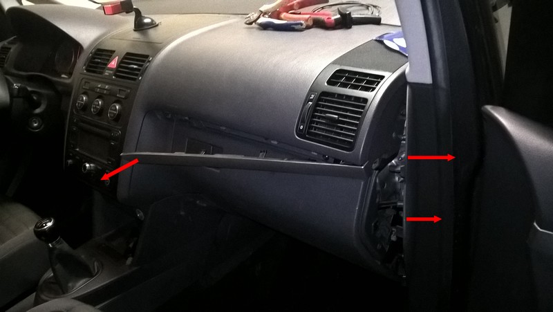 Ensuite, dévisser les 2 vis torx à l'intérieur de la boite à gant: