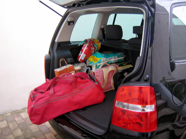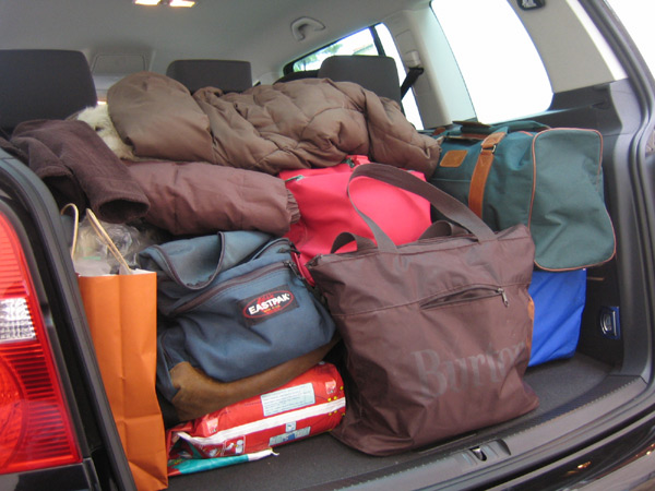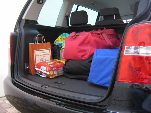 Préparation du départ et premier "vrai" changement, le chargement du coffre; 2 adultes et 2 enfants avec une météo de mi-saison.... y va faire beau ou y va faire froid ??? Du coup personne ne se gêne en terme d'affaires pour une petite semaine et le coffre est rempli..... mais aucun sac ni valise dans l'habitacle; chose qui se passait régulièrement avec la Golf.