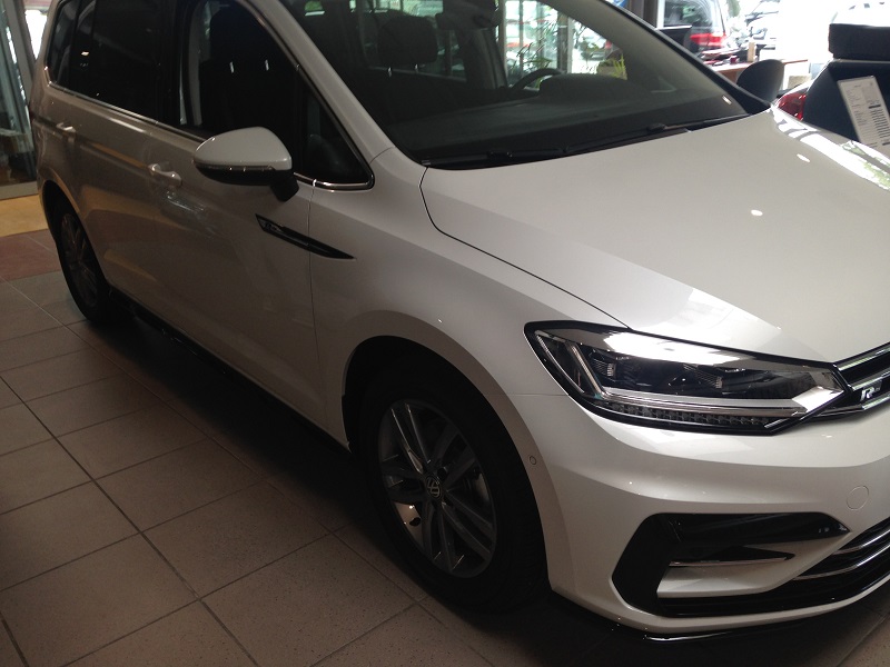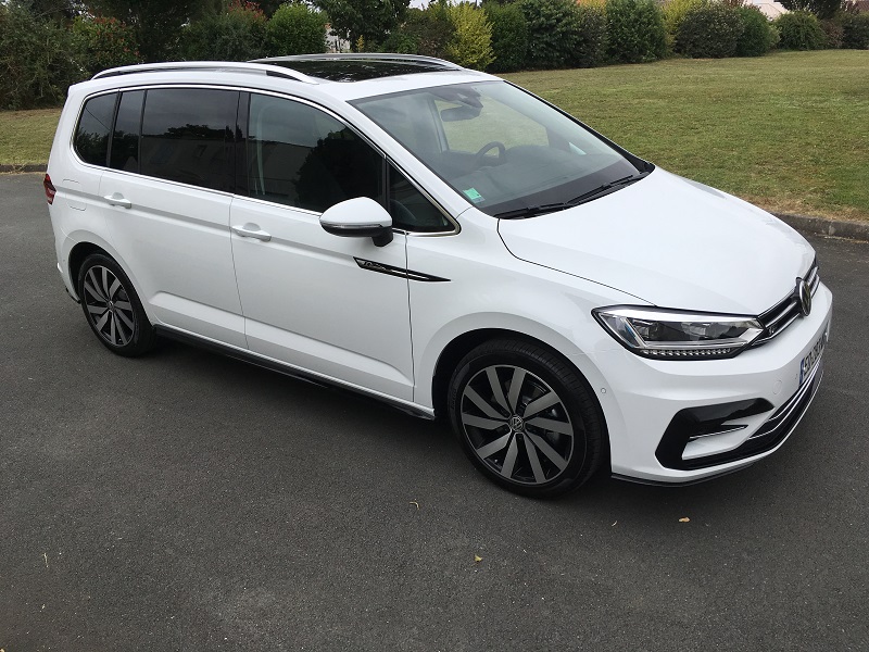 voila un Touran RLine 2L TDI en concession à SAINTES Blanc Oryx.