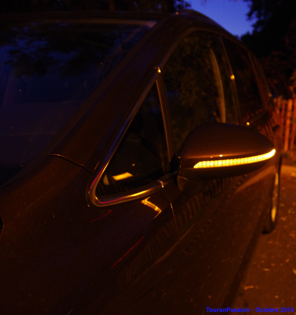 Eclairage intérieur soigné dans cette finition Carat. Les contre portes ont un liseré éclairé la nuit. Uniquement à l'avant. Un liseré lumineux fait le tour du toit ouvrant aussi. Mais très discret, et pas simple à prendre en photo. L'intensité lumineuse des contre portes, du plafonnier, des éclairages de pied sont réglables depuis l'Info Divertissement. Quelques autres coloris de Touran, avec les jantes Vallelunga en 17". Une Golf Sportvan chaussée aves les jantes Marseille de 18", disponibles sur le Touran.