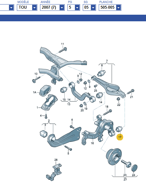 8 : chez VW, il faut acheter le bras transversal inférieur 7 : Ref 1K0 505 311 AB