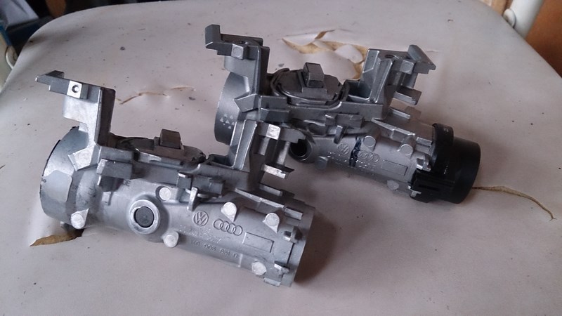 on decoupe l'ancien afin de "recuperer" mon barillet qui ne pouvait etre deverrouille vu qu'il ne tournait plus, je ne savais pas encore qu'on pouvait "forcer" le deverrouillage avec une autre clef