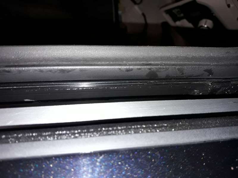Tout le long du rail, l’eau s’infiltrait entre le plastique et l’alu selon le trait rouge sur la photo.