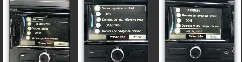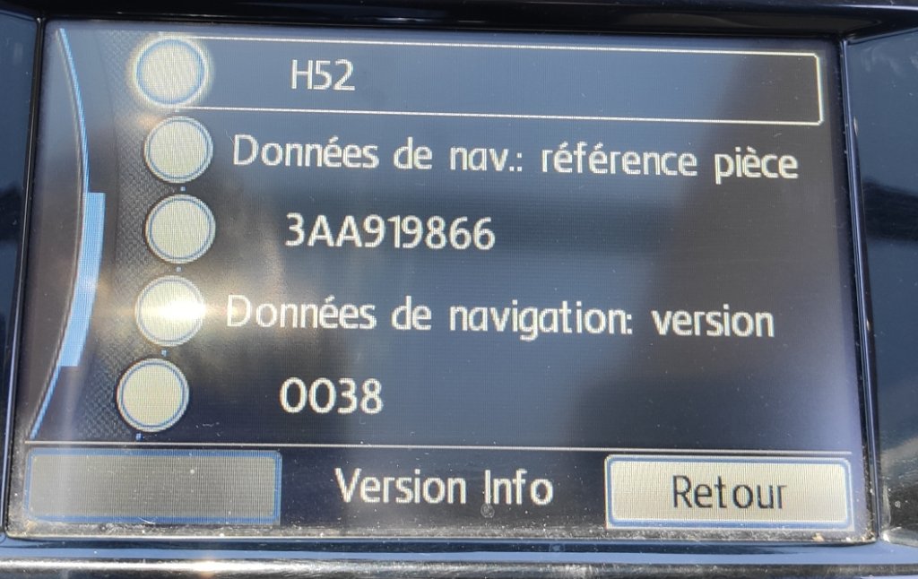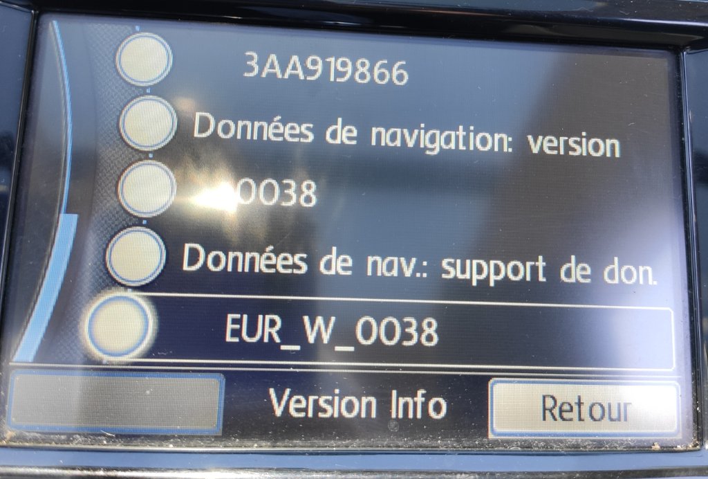 J'utilise un RNS 315 avec cartographie Western Europe 0038. Le plus simple c'est que je le montre en image: