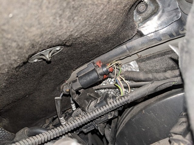 En suivant le fil, il descend derrière le moteur, et accessible par dessous, avant le FAP.