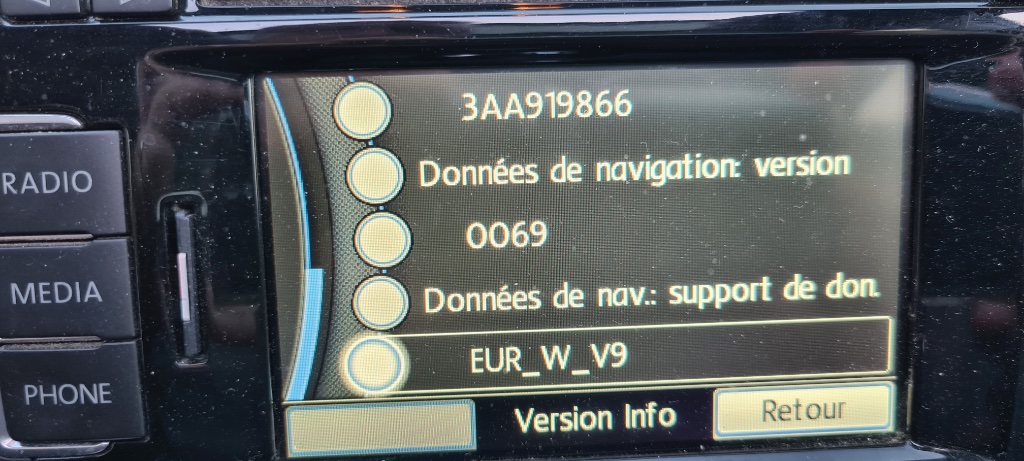 J'utilise un RNS 315 avec cartographie Western Europe 0038. Le plus simple c'est que je le montre en image: