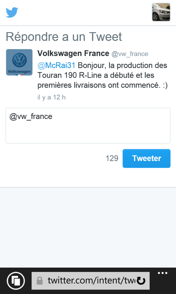 Suite question.sur Twitter a VW France sur démarrage et livraison des R-Line 190cv
