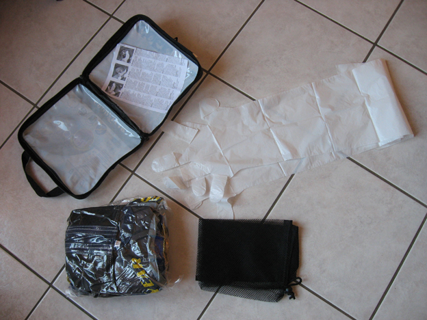 Contenu du sac : chaussettes (emballées sous vide), filet, paire de gants, mode d'emploi