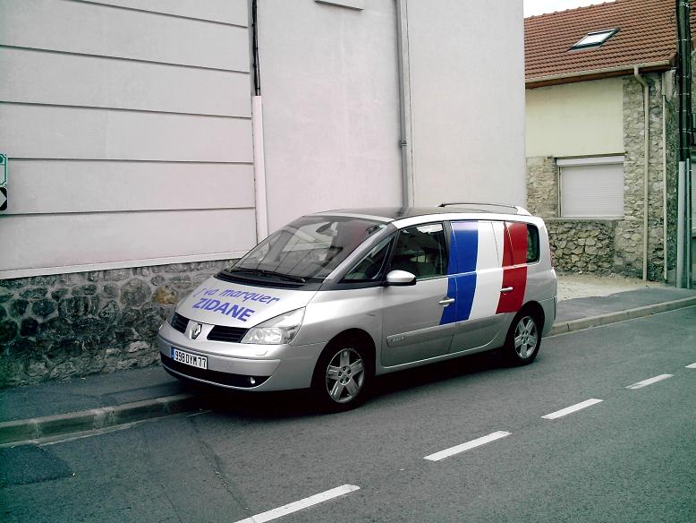 C'est l'effet renault, j'ai croisé un Scénic identifié de la même façon "Allez les Bleus" + les couleurs du drapeau.....