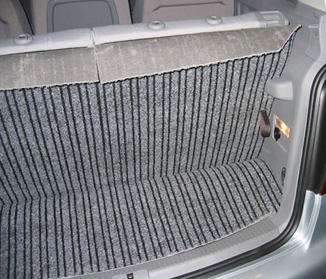 Ma moitié ayant jeter il y a 2 mois 40 m2 de moquette, je me suis acheté un bac en plactic-mousse pour 12 euros chez norauto en 90 x 110 cm, sa va pas trop mal, sauf pour l'arrondis du seuil de coffre