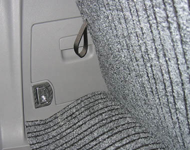 C'est causé par le fait que le tapis plonge en partie sous le plancher et se retrouve coincé entre le dossier et le petit coffre. C'est moins pire que de voir le tapis remonter...