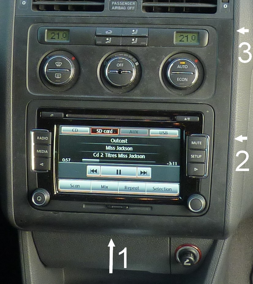 -Un Touran avec un autoradio pouvant recevoir une installation Bluetooth VW. Pour ma part, il s'agit d'un RCD 510 importé de Chine (marque Delphi)