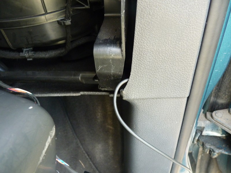 Démonter la boite à gants en déclipsant la garniture côté droit et la garniture "Alu" puis retirer les vis Torx qui la retiennent à l'intérieur en haut et à l'extérieur en bas. Ensuite on va sortir l'autoradio de son emplacement. Enlever la garniture en la déclipsant. Commencer par le bas puis les côtés et ensuite finir avec le haut, en tirant doucement ça vient tout seul puis enlever les 4 vis Torx qui retiennent l'autoradio puis le débrancher pour le sortir. On va ensuite continuer à faire descendre le faisceau du micro le long des garnitures. Plutôt que de les démonter, j'ai fait passer mon câblage en soulevant le joint puis les garnitures qui sont relativement souples. Ce n'est pas simple mais avec un peu de méthode, on y arrive: Et on arrive ici: Faire passer votre faisceau Plug and Play derrière la boite à gants afin de l'amener au plus près du faisceau d'origine de l'autoradio afin de les brancher ensemble. Là aussi, il faut y aller avec méthode. Je suis passé par le bas là où sont fixées les vis extérieures de la boite à gants.