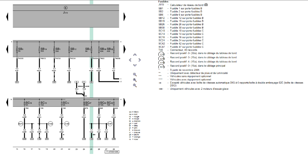 pour le câblage, d'après ce que j'ai pu voir pour golf 5 (je pense qu'il n'y doit pas y avoir beaucoup de changement sur le touran)... le + permanent sur la boite a fusible position 17, la masse sur le connecteur du plafonnier, et le LIN BUS sur la centrale ..