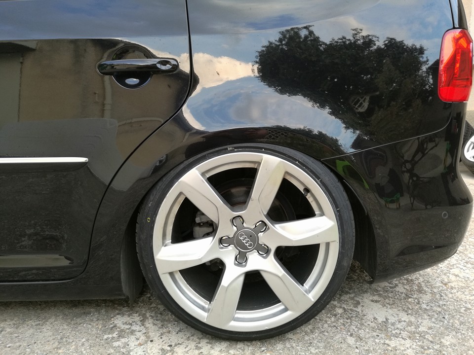 Pour des raison d'économie les avant sont montées avec des pneus que j'avais déjà en 225/35/18 (où le fait qu'ils ne soient pas trop tendu), et un bon coup (pneus neuf à 100€ les 2) sur le bon coin pour les arrières en 245/35/18.