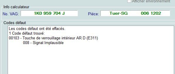Le lève vitre fonctionne à l'envers , je baisse , il monte et inversement et le scane me donne souci sur touche de verrouillage , le verrouillage centralisé fonctionne correctement , les portes sont bien fermé.