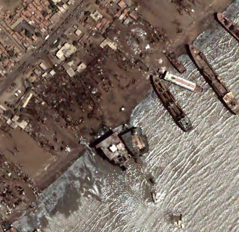 Les restes de deux tankers ( je présume ) sur la même "plage" :