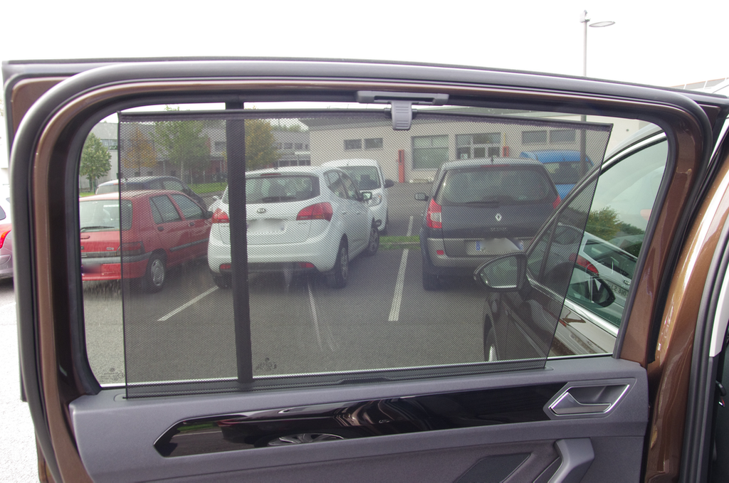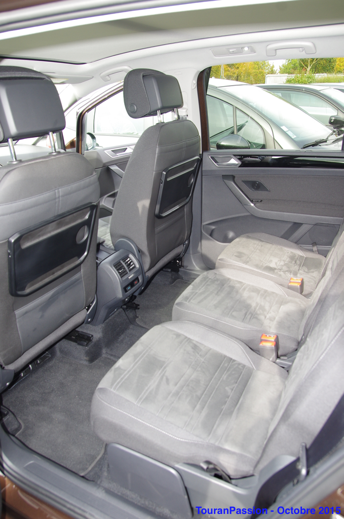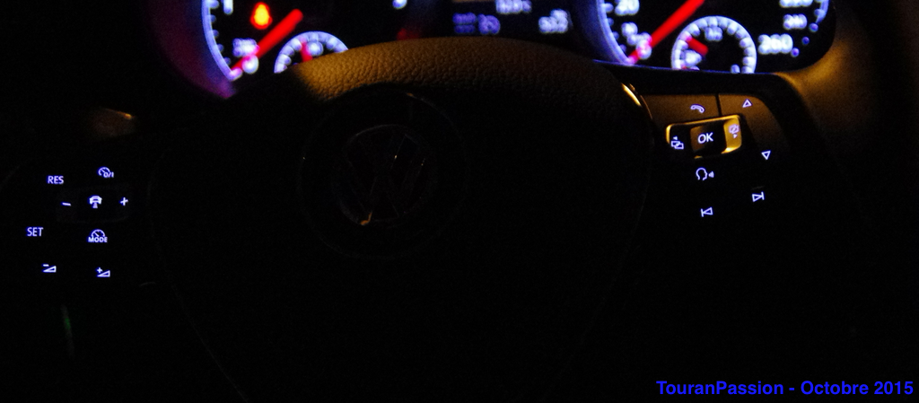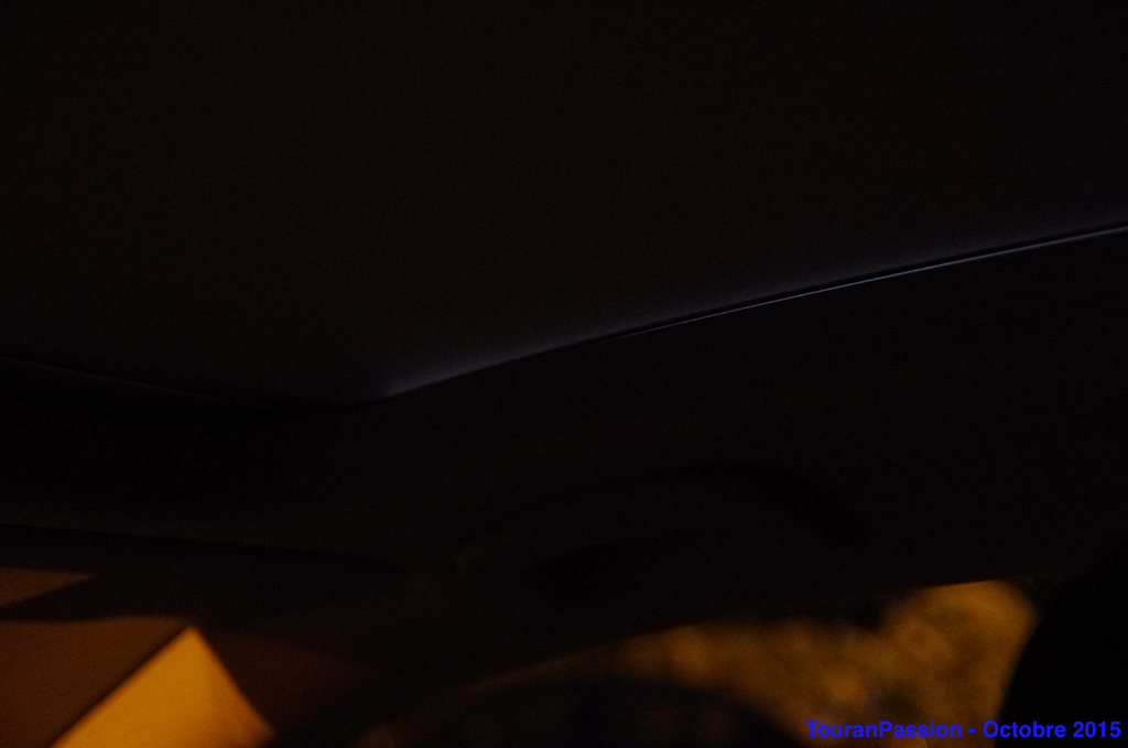 Eclairage intérieur soigné dans cette finition Carat. Les contre portes ont un liseré éclairé la nuit. Uniquement à l'avant. Un liseré lumineux fait le tour du toit ouvrant aussi. Mais très discret, et pas simple à prendre en photo. L'intensité lumineuse des contre portes, du plafonnier, des éclairages de pied sont réglables depuis l'Info Divertissement. Quelques autres coloris de Touran, avec les jantes Vallelunga en 17". Une Golf Sportvan chaussée aves les jantes Marseille de 18", disponibles sur le Touran.