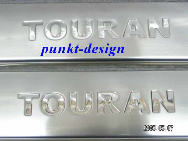 pour celui que cela interresse il y a sur ebay un gars serieux qui vend des seuils de porte pour touran en inox pour 39euros les quatres je lvous joints les photos car moi j'ai craque
